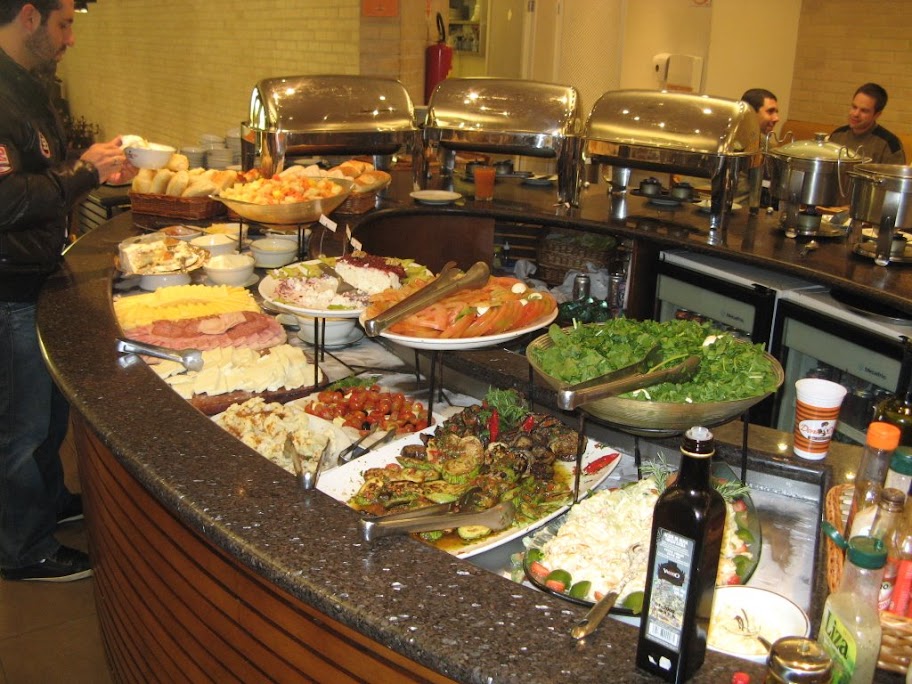 A degustação começou com uma saladinha: uma fatia de tomate, outra de pimentão amarelo, duas de berigela, um pedaço de palmito, alface e alguns brotos de feijão com um molho italiano. Algo digno de uma "dieta de SPA".